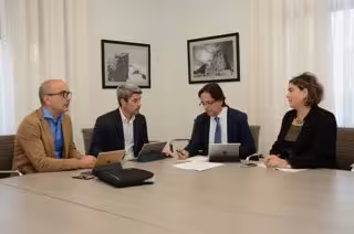 El consejero insular de Turismo, Alberto Bernabé, y el viceconsejero de Turismo del Gobierno autónomo, Cristóbal de la Rosa, acompañados por el consejero delegado de Turismo de Tenerife, Vicente Dorta, y la gerente de Promotur, María Méndez, mantuvieron ayer martes una reunión para planificar las acciones que se apoyarán este año en el marco del convenio.