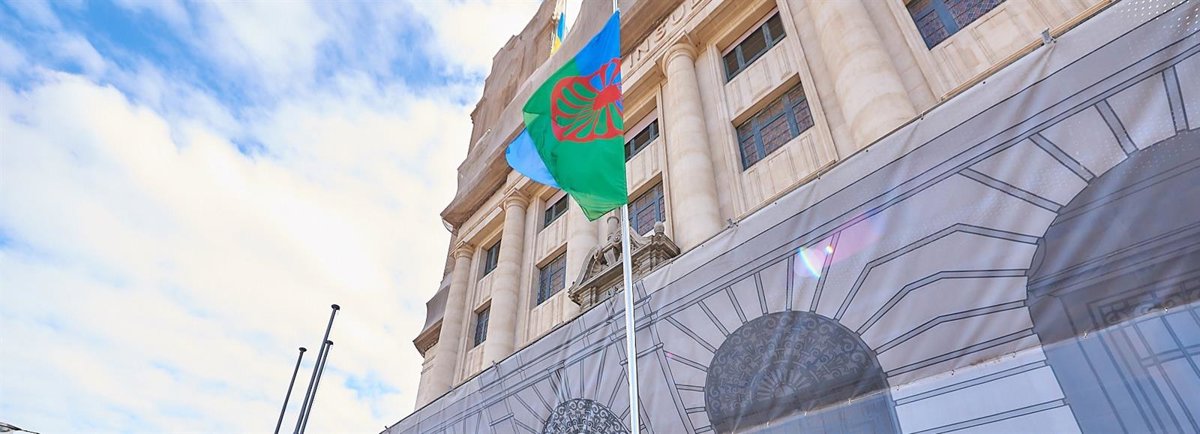 Archivo - Bandera del Pueblo Gitano ondeando frente al Cabildo de Tenerife - CABILDO DE TENERIFE - Archivo