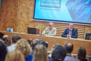 La gerente de Tuvisa (Autobuses Urbanos de Vitoria-Gasteiz), María José Ajuriaguerra, destacó la necesidad de garantizar la equidad en el servicio del transporte público y de priorizar el carril bus, la doble parada, la preferencia semafórica y la intermodalidad en el diseño de la red de movilidad de la capital vasca.