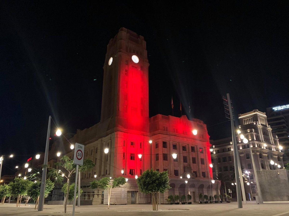 El Cabildo de Tenerife se ilumina de rojo con motivo del Día Mundial del Sida - CABILDO DE TENERIFE