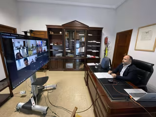 El consejero de Transición Ecológica del Gobierno de Canarias, José Antonio Valbuena, en uan reunión telemática con los cabildos sobre los fondos Next Generation - GOBIERNO DE CANARIAS
