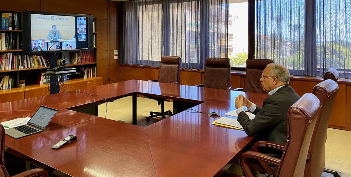 El presidente de la fecai, Casimiro Curbelo, en una videconferencia con el presidente de Canarias, Ángel Víctor Torres - CABILDO DE LA GOMERA