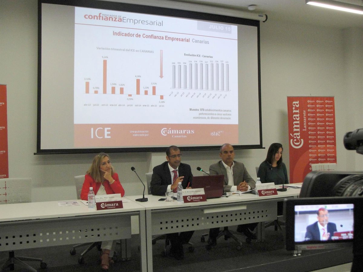 Así lo pusieron de manifiesto el secretario general de la Cámara de Lanzarote, Bernardino Jiménez; la secretaria general de la Cámara de Gran Canaria, Pilar Alcaide; el secretario general de la Cámara de Santa Cruz de Tenerife, Vicente Dorta; y la secretaria general de la Cámara de Fuerteventura, Sonia Camino, durante la presentación del Indicador de Confianza Empresarial (ICE).