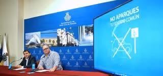 El alcalde de Santa Cruz de Tenerife, José Manuel Bermúdez, y el concejal de Accesibilidad, Carlos Correa, presentaron este viernes en rueda de prensa la campaña 'No aparques tu sentido común' dirigida a generar debate entre la ciudadanía con el fin de concienciar y sensibilizar a quienes hacen un uso irresponsable de las plazas de estacionamiento para personas con movilidad reducida (PMR).