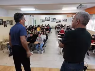 Palacios y Quintana durante la conferencia en el 'IES A Pinguela'en Lugo - CEDIDO POR CANARIAS, 1500 KM DE COSTA