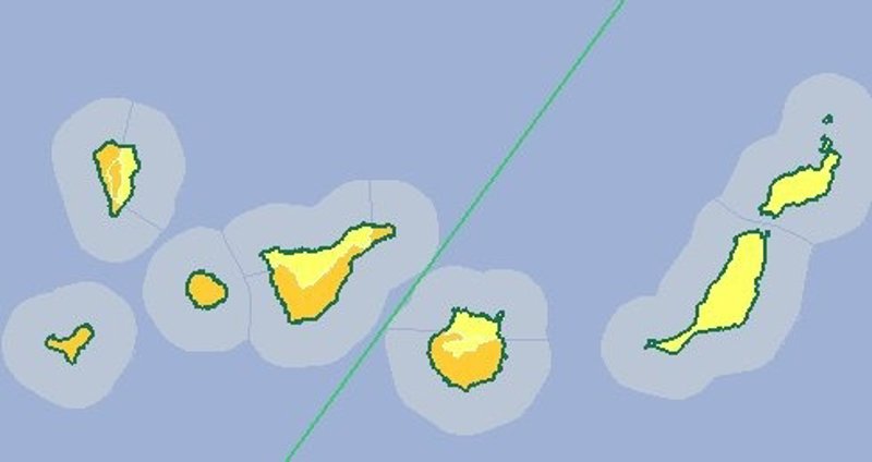 Según la previsión de la Aemet, el aviso naranja afectará al oeste de La Palma; El Hierro; La Gomera; este, sur y oeste de Tenerife, y este sur y oeste de Gran Canaria; el aviso amarillo estará activo desde este domingo en el norte de Tenerife, norte de Gran Canaria, Lanzarote, Fuerteventura y, a partir del lunes, este de La Palma.