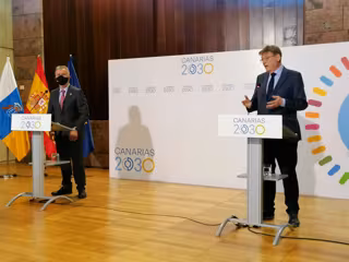 El presidente de Canarias, Ángel Víctor Torres, y el presidente de la Generalitat Valenciana, Ximo Puig, han firmado este miércoles un convenio de colaboración para la gestión y la prestación de servicios propios en materia de innovación sanitaria a través del proyecto 'Medicina Personalizada Big Data' (Proyecto MedP Bigdata), que cuenta con una inversión de casi 6 millones de euros y la participación de más de 7.000 personas en su primera fase.