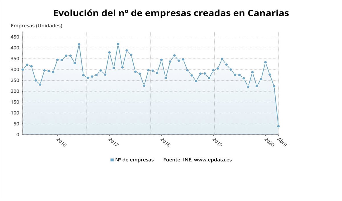 Canarias encabeza la caída de la creación empresas con una bajada del 88% en abril - EPDATA