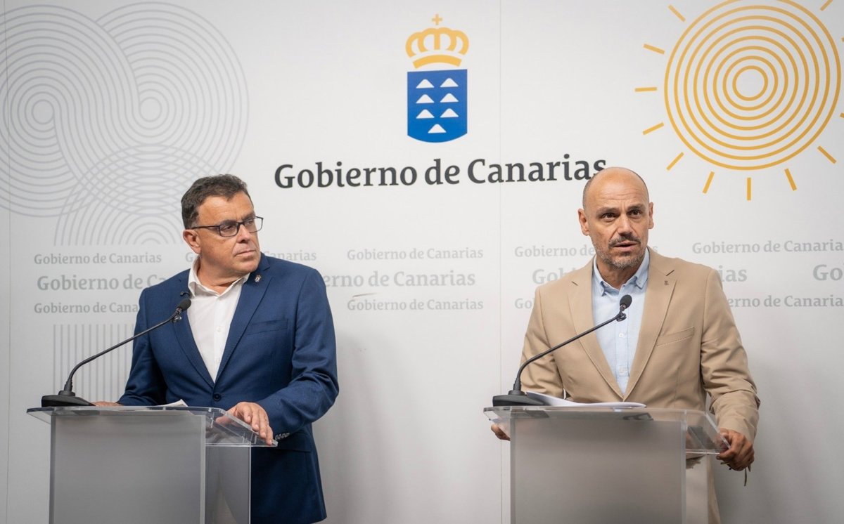 El consejero de Política Territorial, Emergencias y Aguas del Gobierno de Canarias, Manuel Miranda, y el portavoz, Alfonso Cabello, en una rueda de prensa para dar cuenta de los acuerdos del Consejo de Gobierno - GOBIERNO DE CANARIAS
