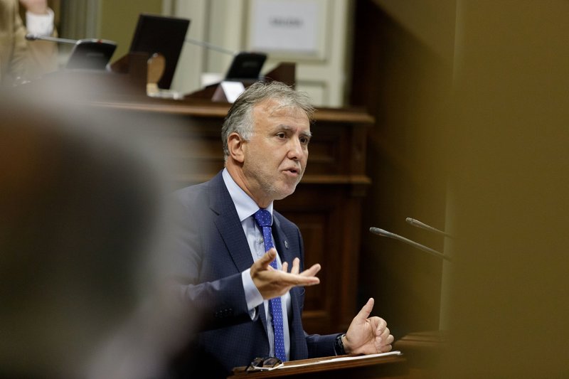 El presidente del Gobierno de Canarias, Ángel Víctor Torres, durante la última sesión plenaria del Parlamento autonómico en la que se debatió y aprobó sin votos en contra el Plan de reactivación de Canarias para afrontar la crisis del coronavirus - GOBIERNO DE CANARIAS