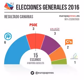 Los resultados en Canarias, con el 99,23 por ciento de los votos escrutados, son los siguientes: