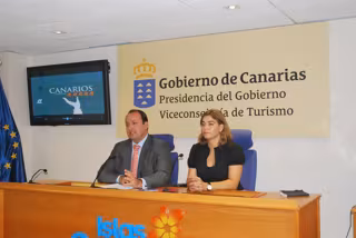 El viceconsejero de Turismo del Gobierno de Canarias, Ricardo Fernández de la Puente Armas, acompañado de la gerente de Turismo de Canarias, María Méndez, presentó este jueves el programa 'Canarios 5 estrellas', cuyo objetivo es reconocer las profesiones en el sector turístico.