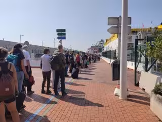 Archivo - Turistas y visitantes a la espera de embarque en el puerto de San Sebastián de La Gomera - CABILDO DE LA GOMERA - Archivo
