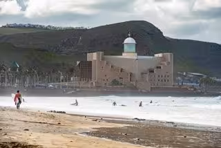 Un surfista pasea por la playa el día más frío del año en la playa de las Canteras, a 21 de enero de 2023, en Las Palmas de Gran Canaria, Las Palmas, Canarias (España). A partir de hoy, las temperaturas descienden por la llegada de una gélida masa de ai - Europa Press