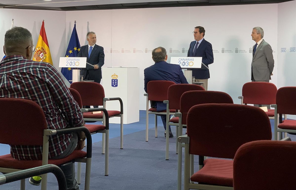En el acto oficial de la firma del protocolo también estuvieron presente la consejera de Economía, Conocimiento y Empleo, Elena Máñez, y el presidente de la Confederación Canaria de Empresarios (CCE), Agustín Manrique de Lara.