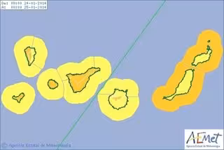 Las islas de la provincia de Las Palmas, por su parte, se encuentran en aviso amarillo por rachas de viento que pueden llegar hasta los 80 kilómetros por hora, mientras que Lanzarote y Fuerteventura tienen activado el aviso naranja por fenómenos costeros adversos.
