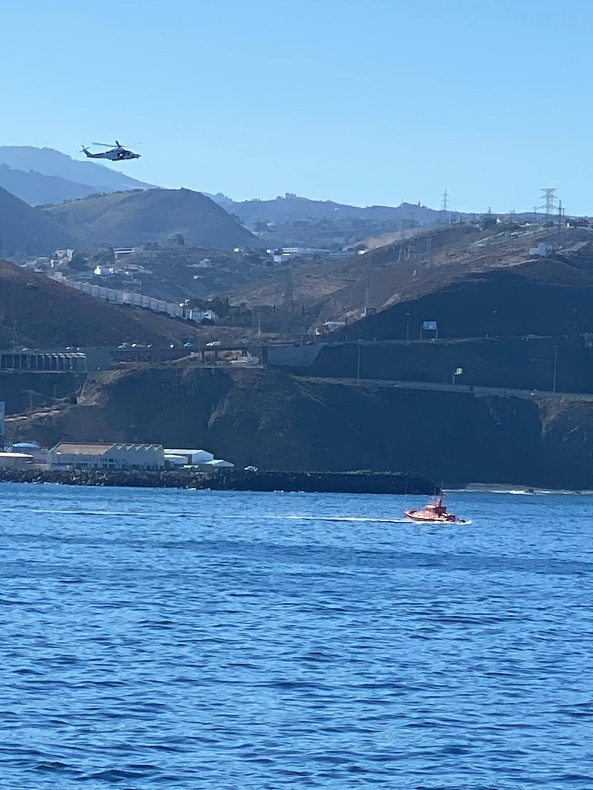 Salvamento Marítimo inspeccionando la zona donde se produjo el vertido de fuel en el Puerto de Las Palmas - TWITTER DEL MINISTERIO DE TRANSPORTES