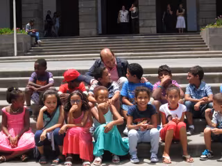 El alcalde de Las Palmas de Gran Canaria, Juan José Cardona, ha recibido este jueves a 20 de los 60 niños saharauis procedentes de los Campos de Refugiados de Tinduf que pasarán el verano en la isla junto a sus familias de acogida.