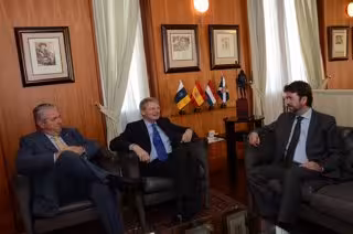 El presidente del Cabildo, Carlos Alonso, recibió ayer jueves al embajador de los Países Bajos en España, Cornelis van Rij, que estos días realiza una ronda de visitas a las principales autoridades del archipiélago.