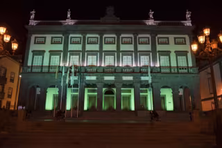 Las Casas Consistoriales de Las Palmas de Gran Canaria se han teñido de verde este viernes, 2 de octubre, en apoyo a las personas con discapacidad intelectual, según informó el Ayuntamiento.