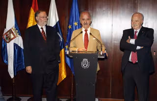 En el acto también estuvo presente el consejero de Desarrollo de Proyectos, Eduardo Pintado, el secretario general del Nuevo Club de París, Günter Koch, el rector de la Universidad de La Laguna, Eduardo Doménech, y otras personalidades.