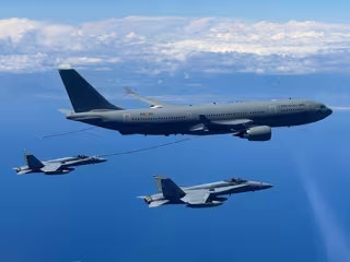 Tres cazas F-18 del Ala 46 han efectuado con éxito su primer reabastecimiento en vuelo utilizando el nuevo avión cisterna Airbus A330 MRTT, según ha informado el Mando Aéreo de Canarias del Ejército del Aire y del Espacio.