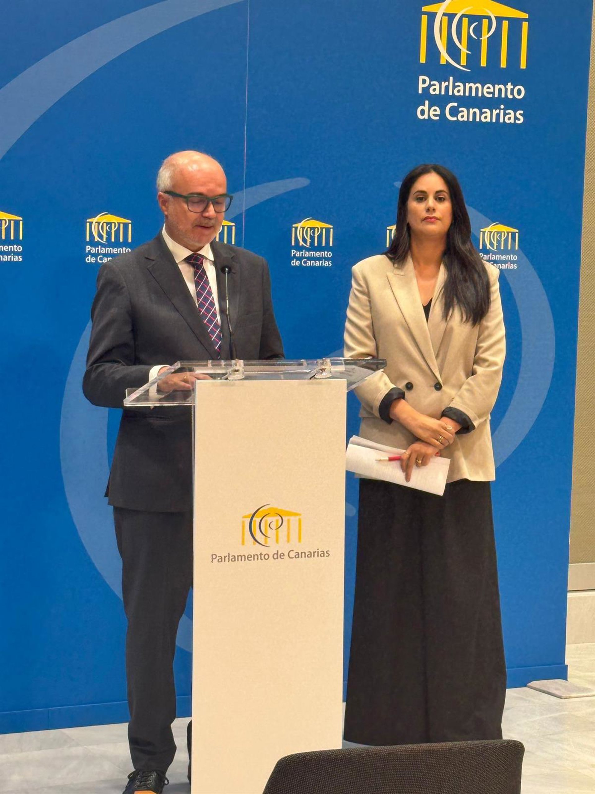 Los diputados del Grupo Nacionalista, José Alberto Díaz-Estébanez y Vidina Espino, en una rueda de prensa para abordar las conclusiones de la comisión de investigación sobre la compra de material sanitario - CC