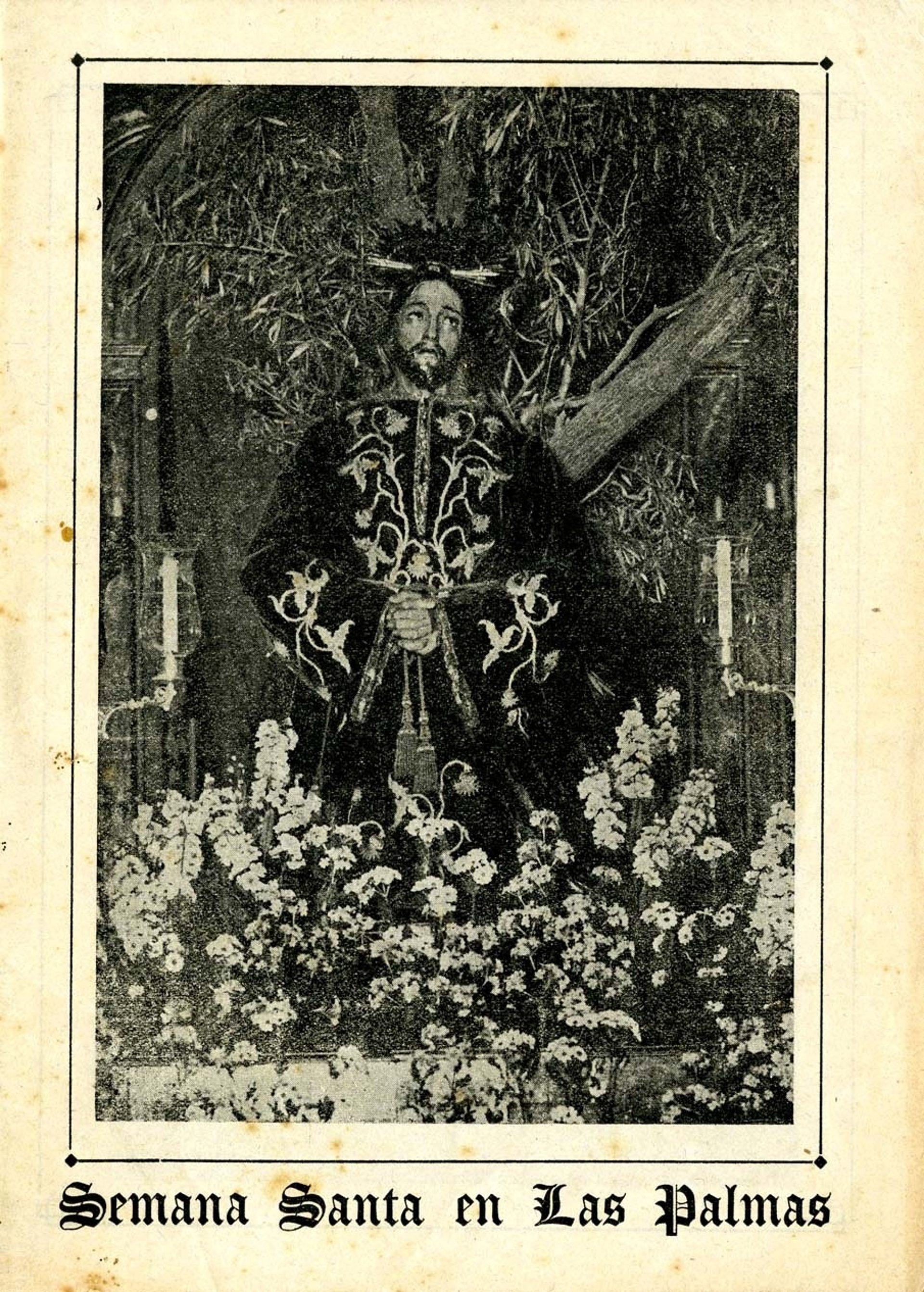 El Centro de Documentación de Canarias y América (Cedocam), de Museos de Tenerife, exhibe un programa de los actos de la Semana Santa en Las Palmas del año 1950, que tuvieron lugar del 2 al 9 de abril, con una fotografía de la imagen del Señor del Huerto en la portada.