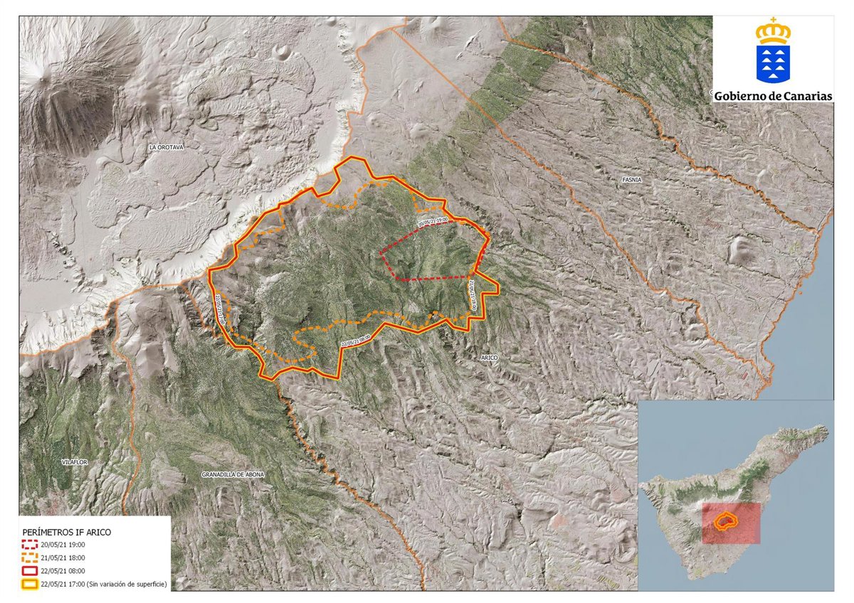 Perímetro del incendio de Arico hasta las 17.00 horas de este sábado - CEDIDO POR GOBIERNO DE CANARIAS