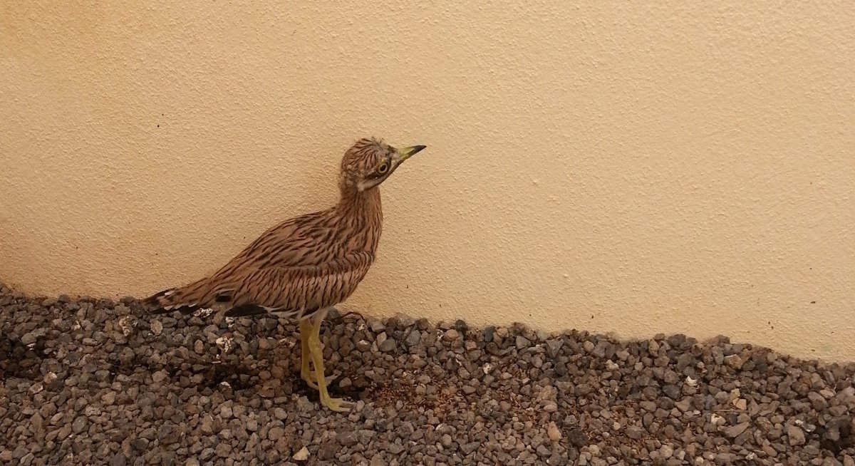 El Alcaraván, conocido también como 'Pedroluis' es un correcaminos particular. Habita en zonas áridas de las medianías del sur y corre más que vuela. El ejemplar alojado en las instalaciones del centro fue recogido en el Valle San Lorenzo.