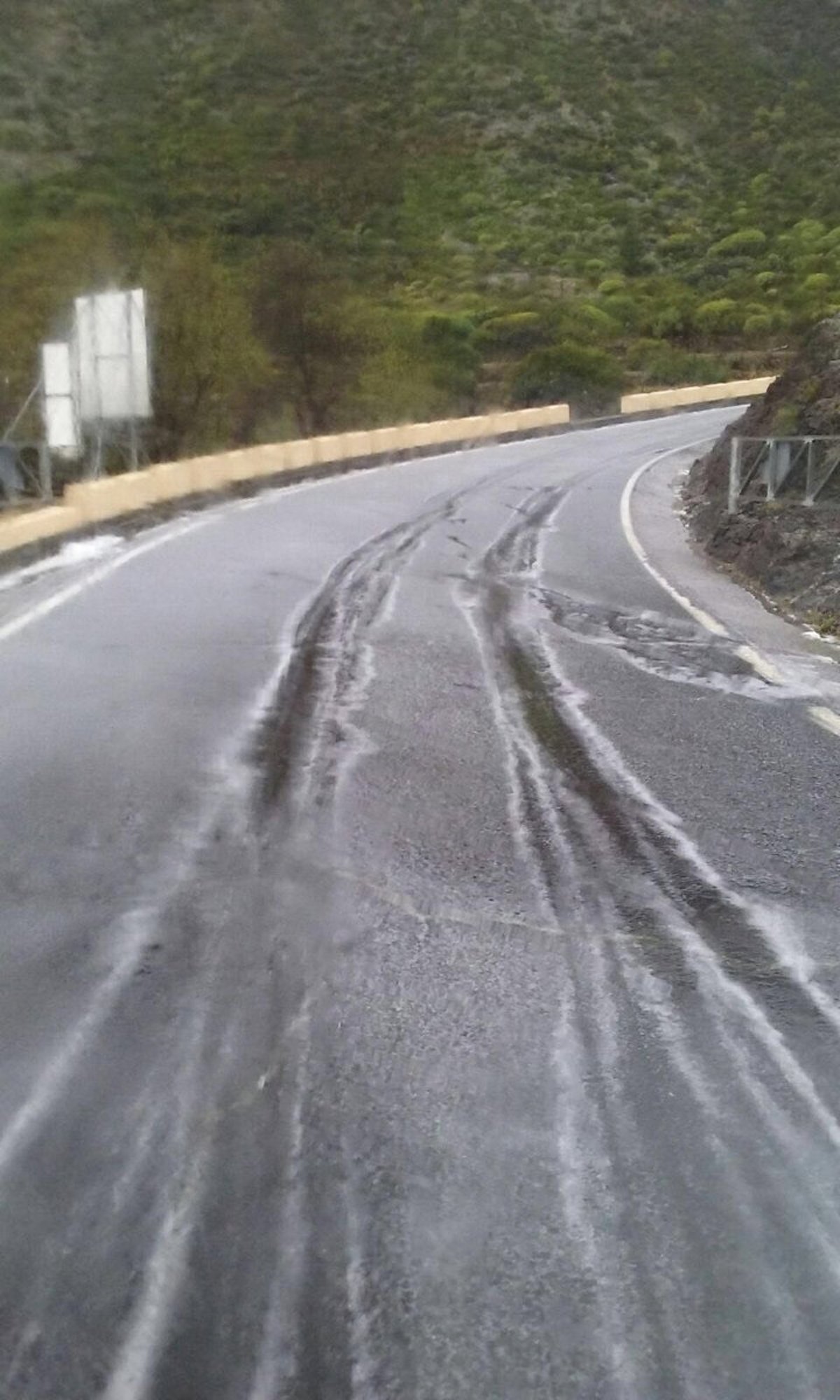 De igual forma, se encuentra cortada por hielo en la calzada la TF-436 que transcurre entre Masca y Santiago del Teide (pk 22 al pk 15), y la TF-31 de acceso al Puerto de la Cruz por Martiánez y la TF-445 de Buenavista del Norte a Teno, por desprendimientos.