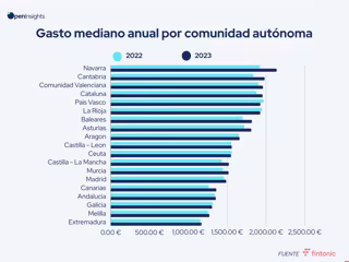 Gasto medio anual por comunidad autónoma, según Fintonic - FINTONIC