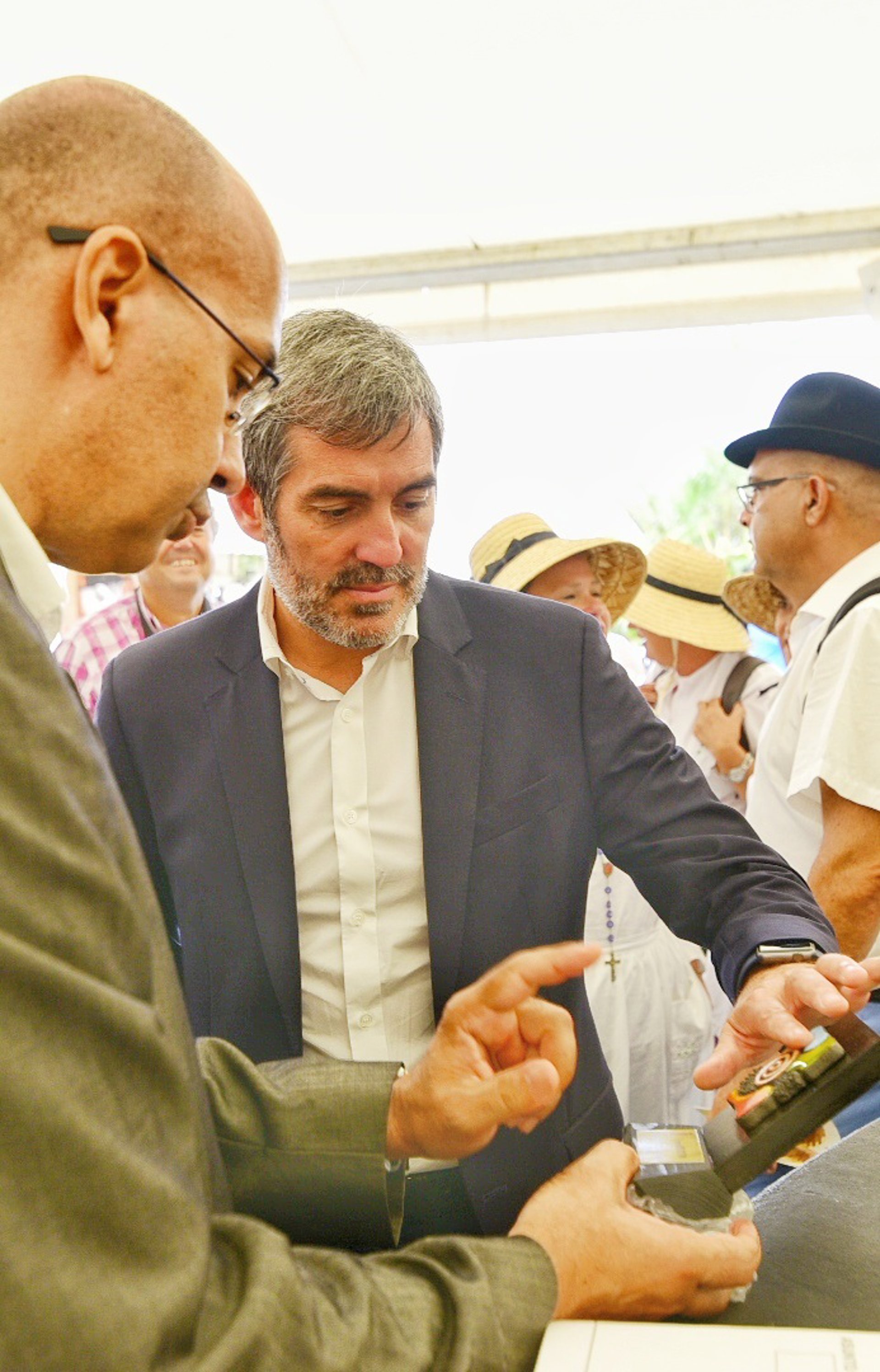 Por su parte, Clavijo recorrió, junto al vicepresidente primero del Cabildo, Manuel Cabrera, el vicepresidente segundo y consejero de Artesanía, Ángel Vázquez, y el alcalde de Tinajo, Jesús Machín, el recinto ferial compuesto por 110 stands de artesanos de todas las islas, a los que este año se suman artesanos de Menorca.