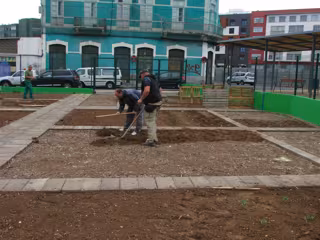 Este espacio, inaugurado hace dos semanas, dispone de 1.684 metros cuadrados, repartidos entre huerto y hueco urbano, y está delimitado por las calles Fernando Guanarteme, Almansa, Luchana y Cayetana Manrique para que contribuya, entre otros, a la mejora de la calidad ambiental de la ciudad y la educación en valores de sostenibilidad.