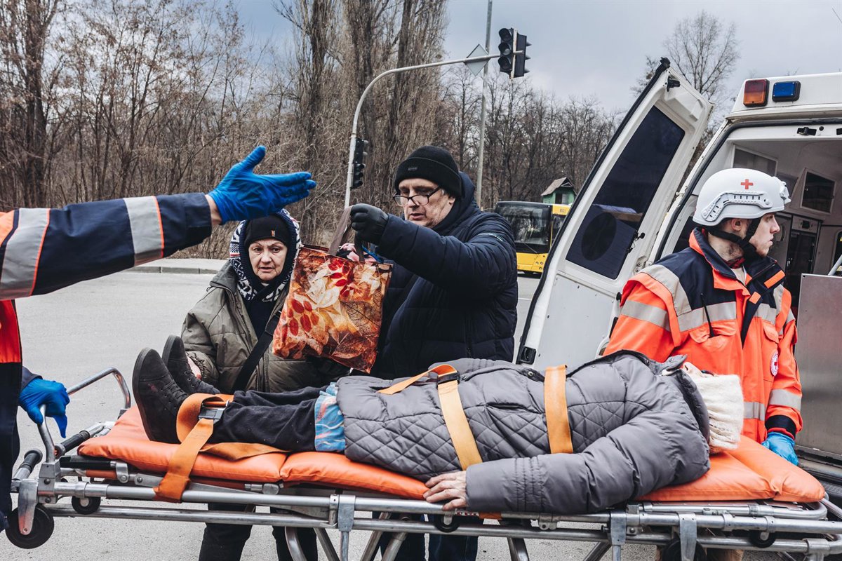 Una anciana es trasladada en ambulancia, a 7 de marzo de 2022, en Irpin (Ucrania) - Diego Herrera - Europa Press