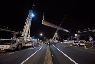 El Cabildo de Tenerife colocó en la noche de este lunes dos vigas prefabricadas de casi 41 metros cada una en la obra que se está ejecutando de la pasarela peatonal de Los Naranjeros (Tacoronte) y que está preparada también para la futura ampliación de la autopista.