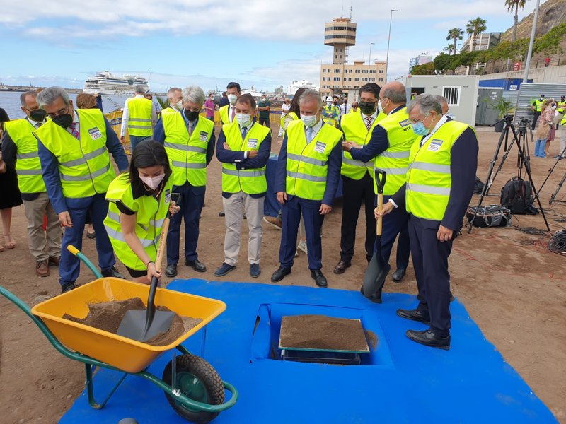 El puerto de Santa Cruz de Tenerife ha acogido este jueves el acto protocolario de la colocación de la primera piedra de las obras de defensa marítima y de ordenación de la zona de charcos del área funcional de la playa de Valleseco.