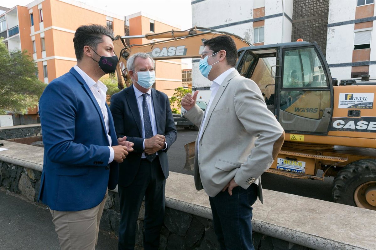 El alcalde de La Laguna, Luis Yeray Gutiérrez; el presidente del Cabildo de Tenerife, Pedro Martín y el consejero de Obras Públicas, Transportes y Vivienda del Gobierno de Canarias, Sebastián Franquis, han tomado parte en el acto que oficializó el comienzo de una actuación esperada por los vecinos, quienes han estado representados por los portavoces de la Comisión de Seguimiento de Las Chumberas, Ricardo González, y la plataforma vecinal 'Las Chumberas Basta Ya', Alberto Osa.