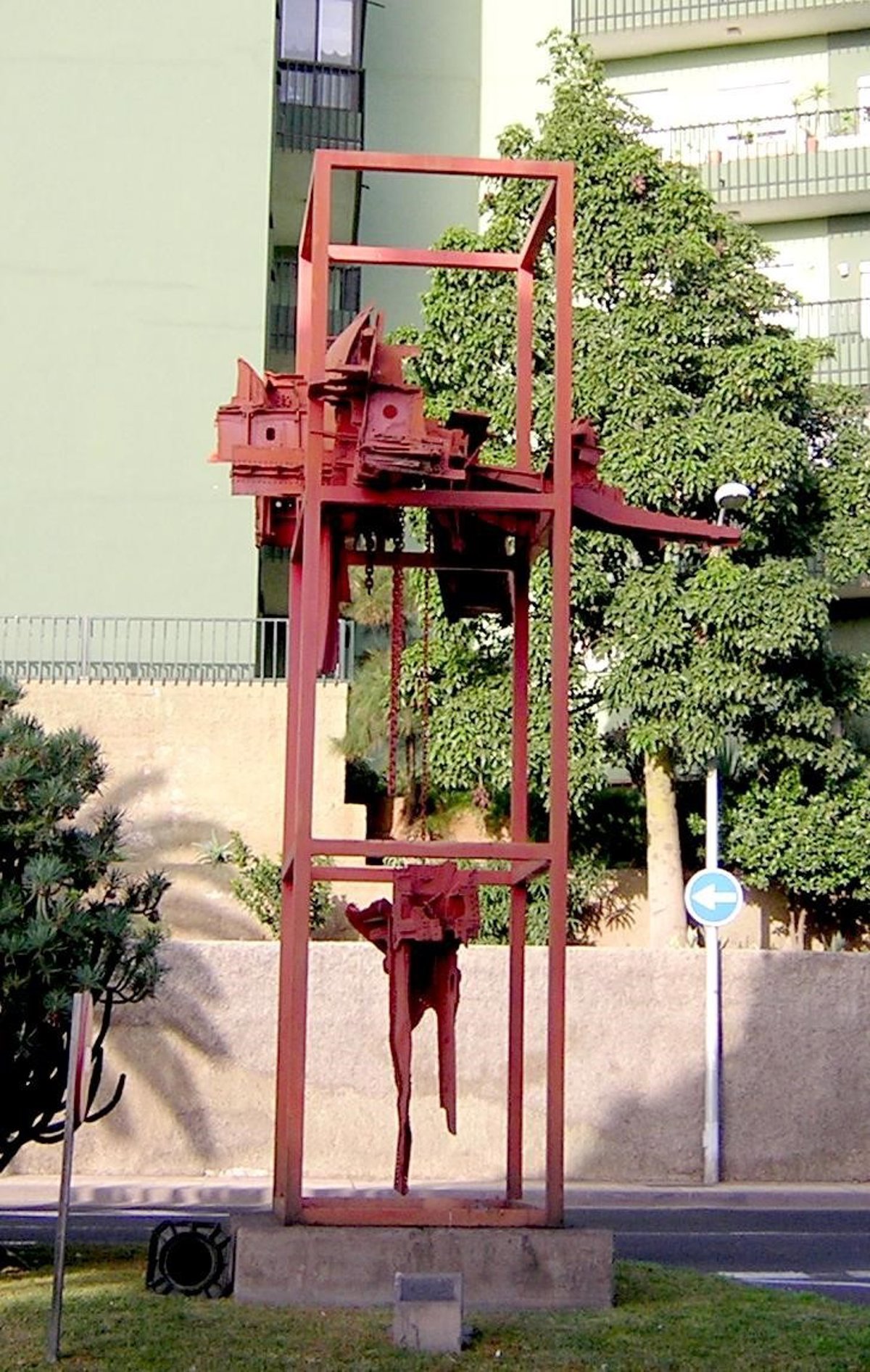Está compuesta por una serie de desechos industriales (chatarra, cadenas) y restos de un avión siniestrado en Tenerife en la década de los 60, insertos en una estructura ortogonal de hierro.