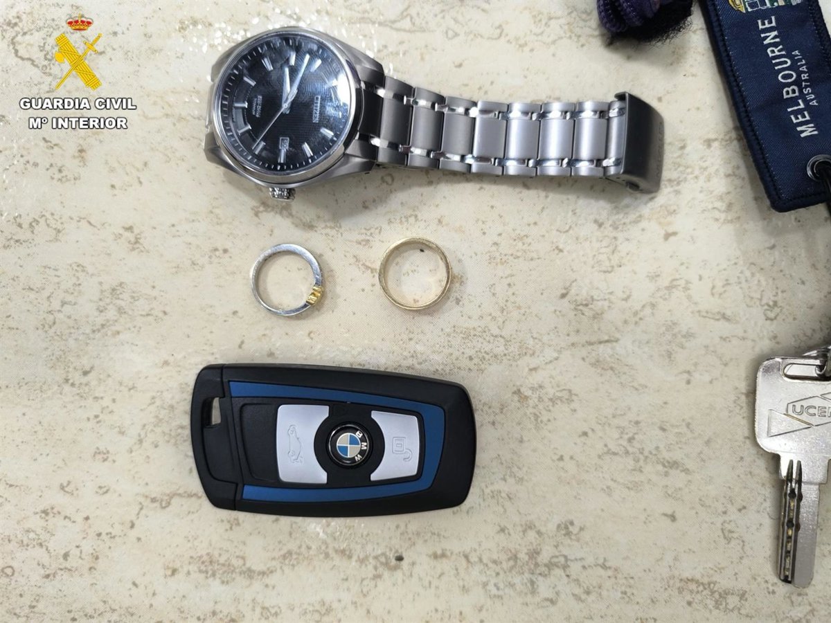 Aprovechando que el ventanal estaba abierto, entró en la habitación y sustrajo diversos efectos personales y de valor, entre ellos un reloj de titanio de alta gama, dos anillos de oro (uno de ellos con incrustaciones de diamantes valorado en 1.500 euros), ropa y material electrónico como unos auriculares AirPods Pro con número de serie identificado.