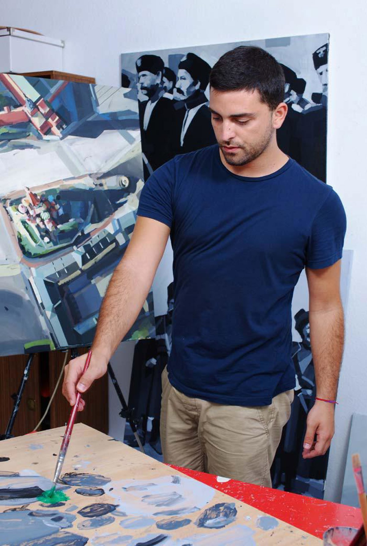 Sus técnicas preferidas son el óleo y el acrílico y así indica que la temática que aborda es variada. "No me gusta estar mucho tiempo trabajando sobre lo mismo. Realizo series. Me inspiro en películas, libros... Cambio. No soy de procesos largos", detalló el joven pintor de 26 años.