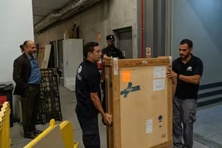 El cuadro 'El Drago de Canarias' de Óscar Domínguez llega al TEA escoltado por la Policía Nacional - CABILDO DE TENERIFE