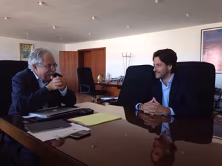 El director general de Comercio del Gobierno de Canarias, Gustavo Matos, y el alcalde de Agadir, Tariq Kabbage, han cerrado un acuerdo para la participación de cuatro empresas canarias en la ejecución de las obras de la Zona Comercial Abierta que el Ayuntamiento de esta ciudad ha comenzado a construir en el barrio histórico de Talborjt, cuyo plan director también fue diseñado por arquitectos canarios.