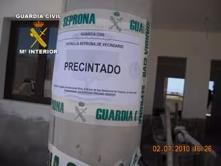 Las investigaciones en el que han intervenido la Unidad de Helicópteros de la Guardia Civil, así como subinspectores de Inspección Provincial de Trabajo y Seguridad Social, dieron como resultado la localización de una casa en construcción en el interior de una parcela rodeada en todo su perímetro por un muro cuya altura dificultaba la observación e identificación total de la construcción que se encontraba en suelo rustico de protección territorial.