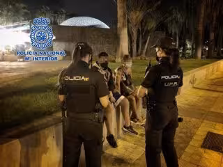 Agentes de la Policía Nacional realizan un control a dos jóvenes con el fin de garantizar las normas frente a la covid-19 - POLICÍA NACIONAL