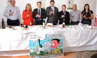 La vicepresidenta de la Cámara de Comercio, Ángeles Palmero, el consejero insular de Agricultura, José Joaquín Bethencourt, y el alcalde de Tacoronte Hermógenes Pérez, también asistieron a la presentación de 'Abril, Mes del Vino', junto a los presidentes de las asociaciones empresariales Asevite y Avite, José Azogue y Sotero Díaz, respectivamente.