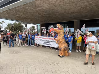 Alrededor de unas 50 personas, uno de ellos disfrazado de dinosaurio, han protestado en la entrada de la Ciudad de la Justicia de Las Palmas de Gran Canaria donde el secretario general de USO en Canarias, Alberto Febles, expuso en declaraciones a los periodistas que Seguridad Integral Canaria ha sido una empresa de las "más importantes" a nivel nacional, que ha llegado a tener "5.000 trabajadores".