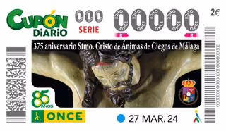 Cupón del 27 de marzo, dedicado al 375 Aniversario del Santísimo Cristo de Ánimas de Ciegos de Málaga - ONCE