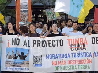 Además de pedir una moratoria turística, la manifestación de este domingo también ha estado impregnada por un "grito" en contra de los proyectos turísticos que están en marcha en las islas, como es el caso, en Tenerife, de Cuna del Alma y La Tejita, en el sur, así en la situación provocada por los vertidos al mar.