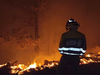 Un efectivo de la EIRIF trabaja en las labores de extinción del incendio de Tenerife durante la noche - GOBIERNO DE CANARIAS